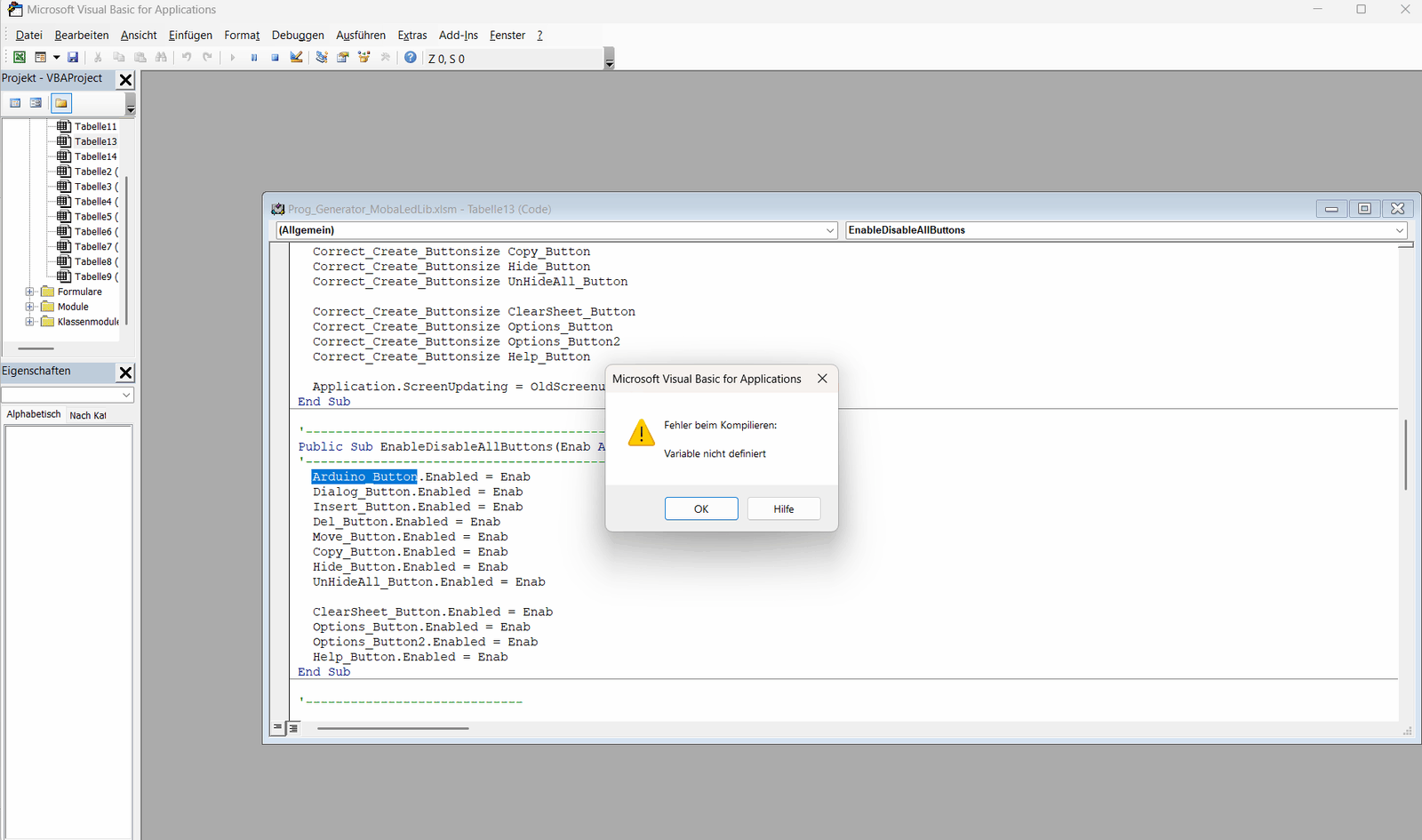 Danach kann ich nur noch debuggen ok drücken aber es passiert nichts mehr.