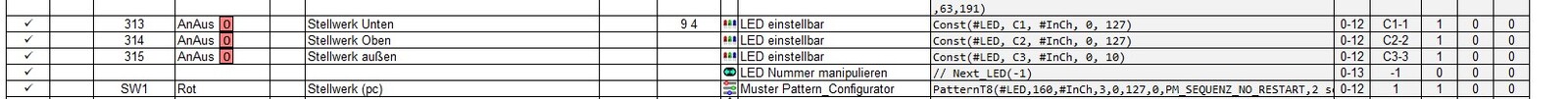 Der Pattern Configurator interpretiert daher 0 als aus und 1 als an (mit 127er Helligkeit).