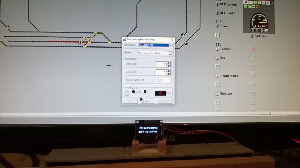 Ein weiterer Schalter sollte zum Umschalten für die Spurweiten gedacht sein , hier sollten die Spurweiten H0 , TT und N möglich sein . Der Versuch an einer Spur N Anlage mit einer Vergleichsmessung war ja erfolgreich .