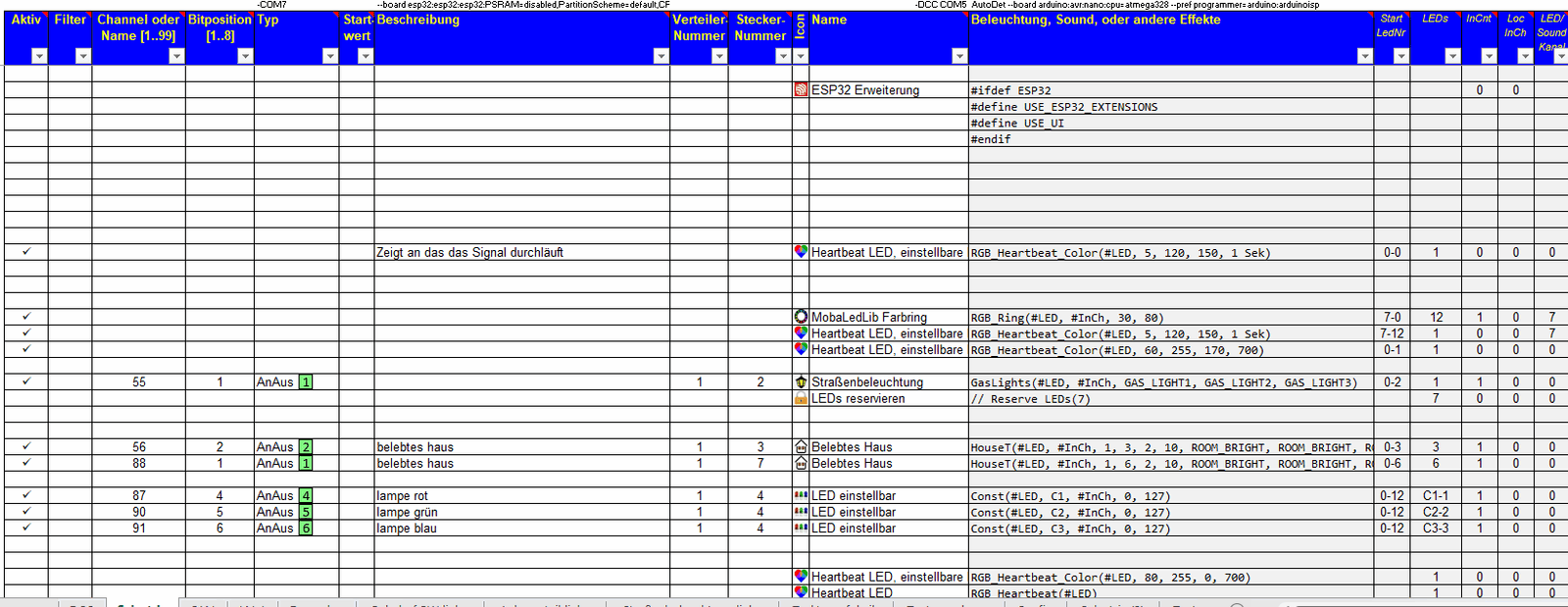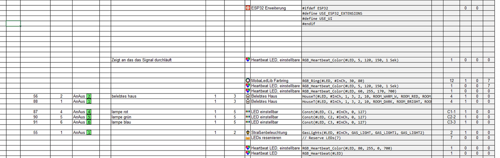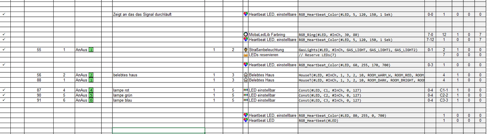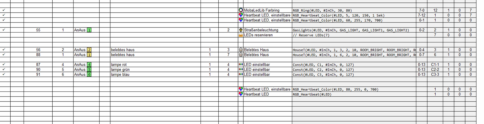 dann stimmt die Reihenfolge im Programmgenerator noch nicht ganz. Die Zeilen müssen genau so untereinander stehen, wie die Reihenfolge der belegten Wannenstecker des Verteilers. Das musst Du genau so umsortieren wie die Liste in meinem letzten Beitrag. Die Reserve-LEDs nicht vergessen. Die gehören weiter zu den Straßenlaternen.