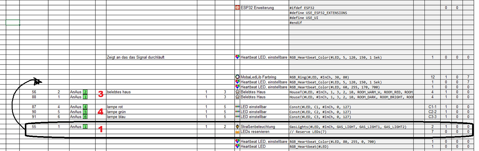 in der Zeile mit Deinen drei Straßenlaternen hast Du die erste Laterne als „GAS_LIGHT“ ohne die Ziffer „1“ eingetragen. Das wäre für eine dreifarbige LED richtig. Wenn Du drei einfarbige Laternen hast, müsste es eigentlich heißen „ GAS_LIGHT1, GAS_LIGHT2, GAS_LIGHT3“.