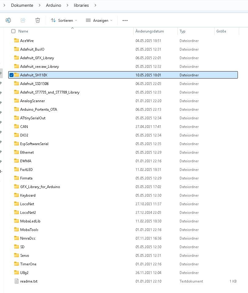 Ach ja, die Bibliotheken Adafruit_SH110X und die SH1106 kannst Du aus den Libraries löschen, außer ein anderer Sketch von Dir nutzt diese.