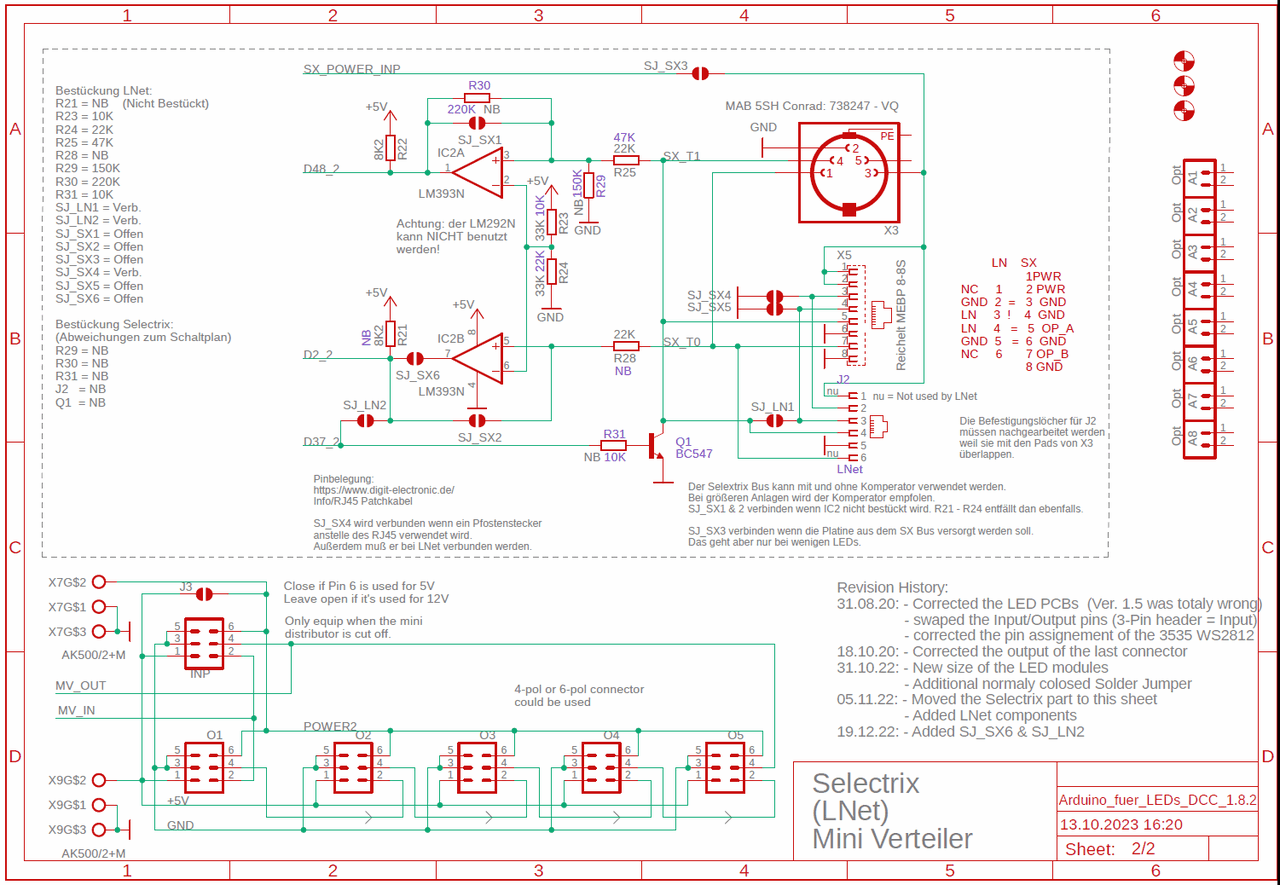 Außerdem ist auf Seite 2 des Schaltplans beschrieben, welche Bauteile und welche Lötbrücken für LNet verwendet/platziert werden sollen.