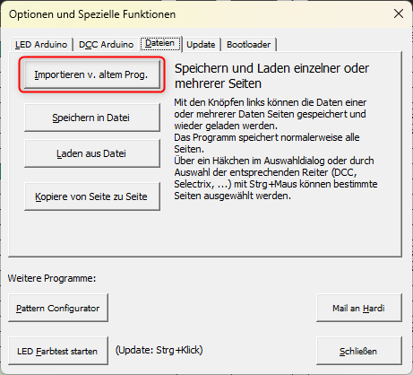 Ich bekomme meine alte Programmierung mit allen Reitern (DCC, DCC2, DCC3) aber nicht geladen.