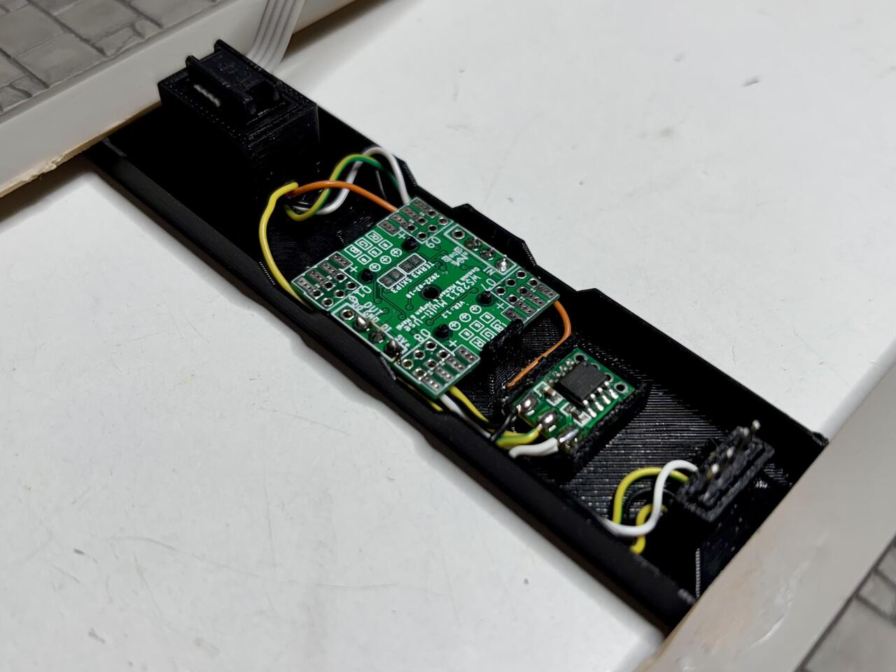 Mit Hilfe meiner parametrischen Lichtboxen wurden exakt passende Boxen gedruckt und ebenfalls mit PLCC2 LEDs bestückt. Lichtboxen drucke ich mittlerweile ausschließlich mit PETG, weil die Bügel dann besser halten. Im Huntergrund sind die zugehörigen WS2811-Module auf Streifenplatine zu sehen.
