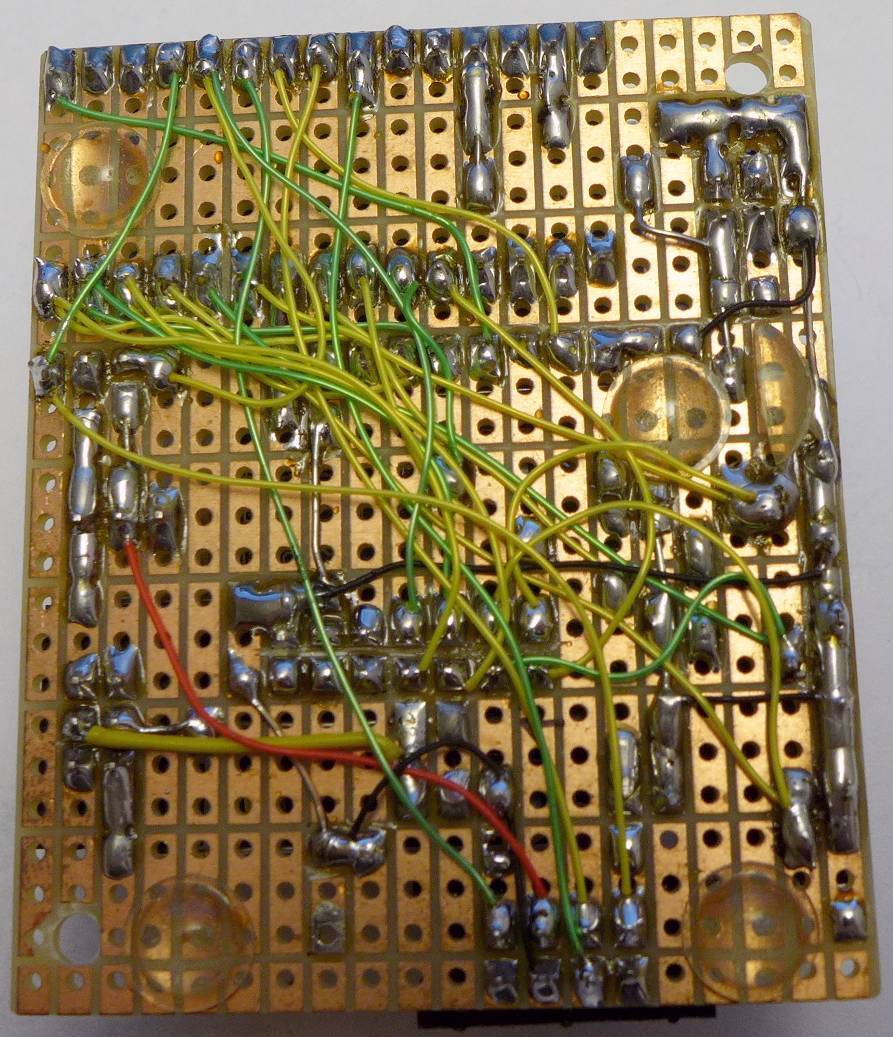 Ich bin daher ein Freund von Streifenplatinen, bei denen zumindest eine Bahn durchgeht. Allerdings sind diese sehr viel schwieriger zu planen. Hier mal zum Vergleich die Mini MLL Plus in geplanter und umgesetzter Form.
