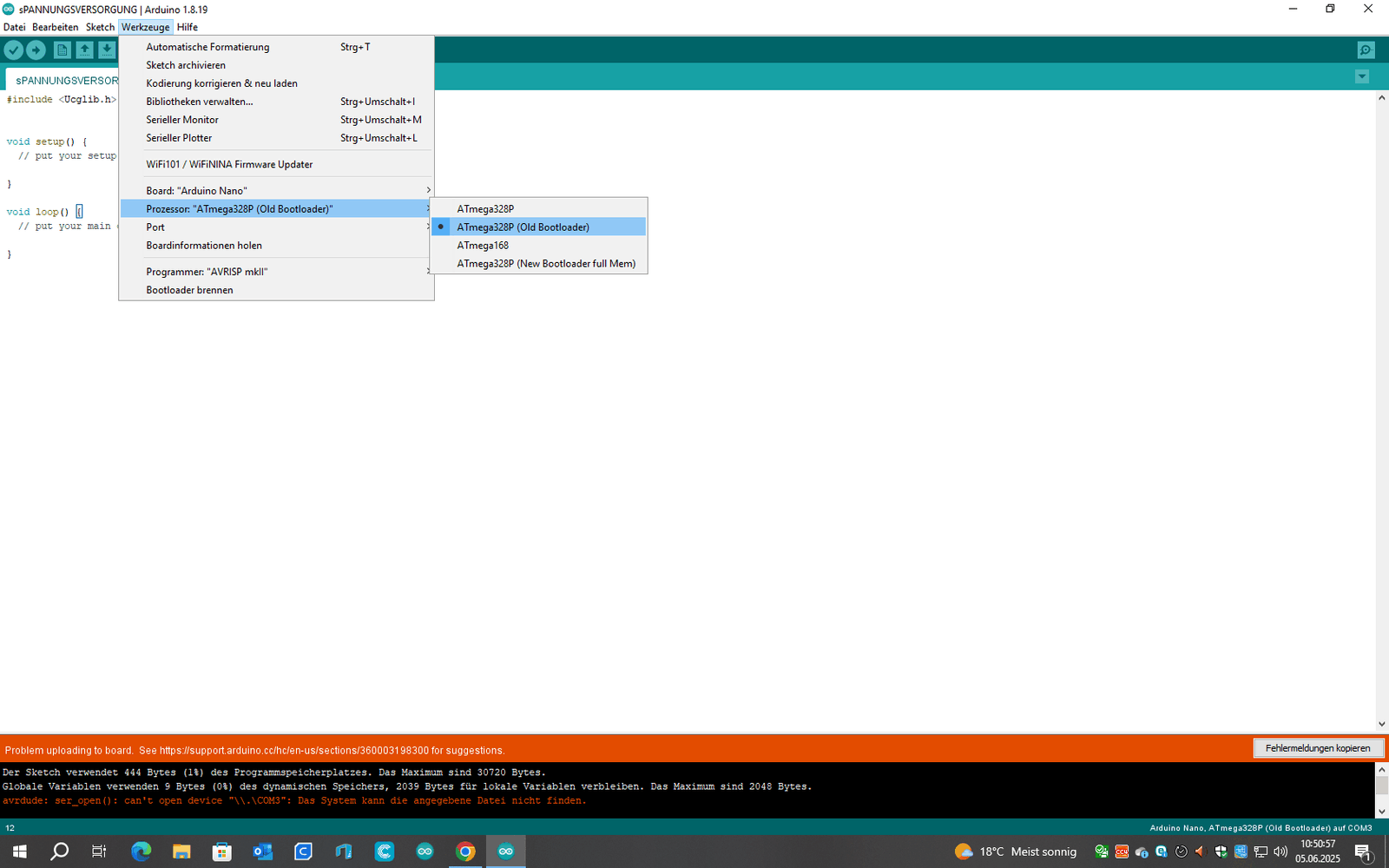 Nach laden des Sketch funktioniert der Nano nicht mehr