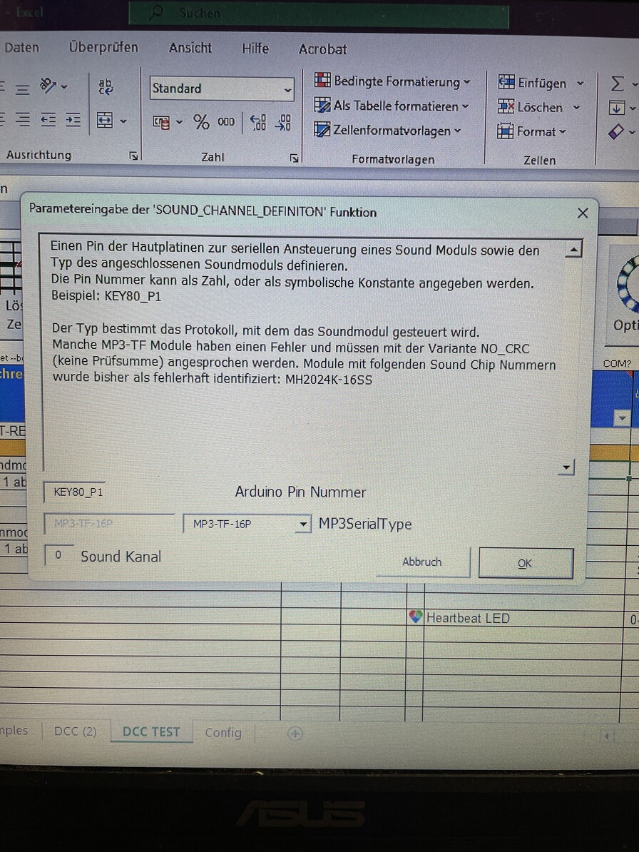 A. Das Soundmodul definiert (Pin 1 und Kanal 0)