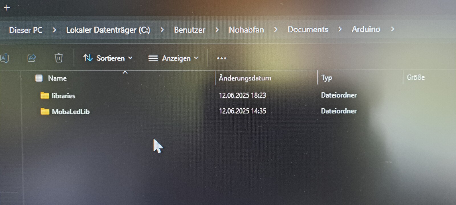 Unter dem Ordner Arduino habe ich zwei Ordner, "libraries" und "MobaLedLib".