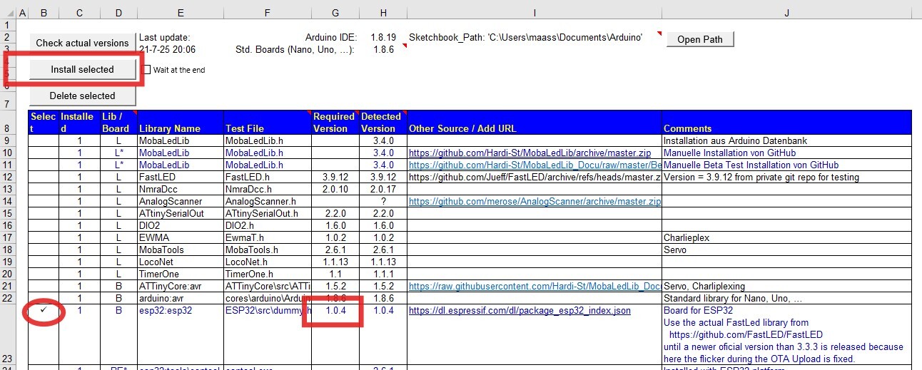 Tatsache ist das du dich erstmal nicht um den DCC Arduino kümmern musst, wenn du beim Led Arduino den Esp32 wroom angezeigt bekommst ist das korrekt. Nur du hast die 1.0.4 Version der ESP Erweiterung nicht installiert.