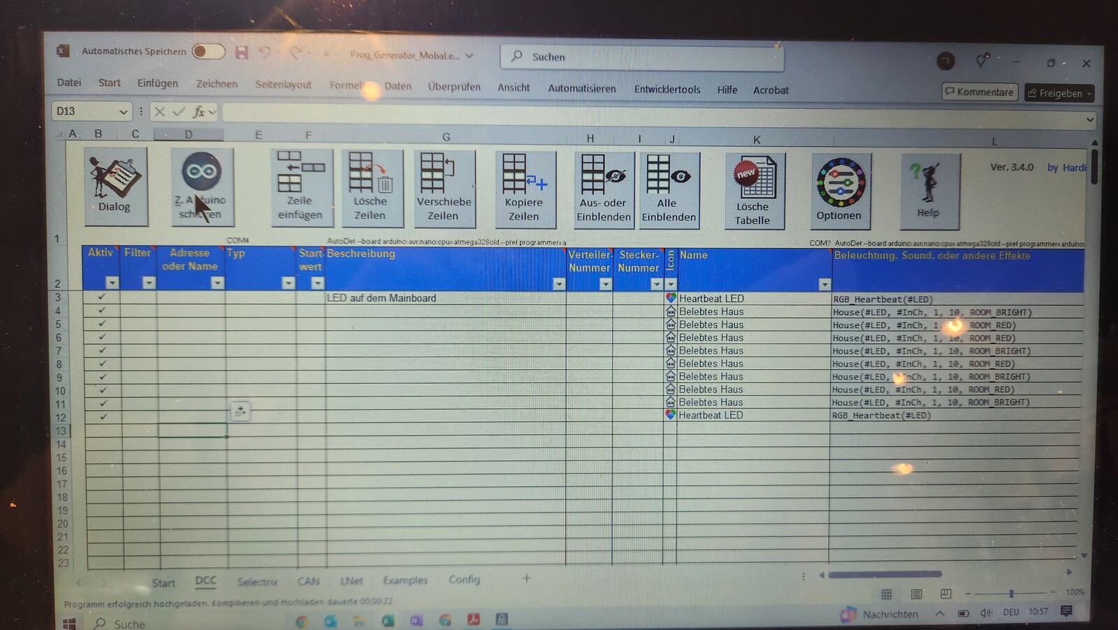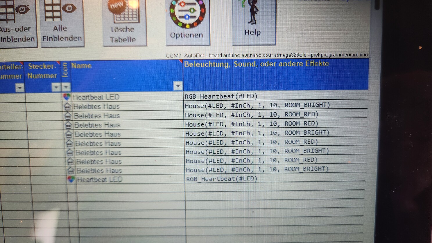 So leuchten alle LEDS. Ich kann programmieren, einschalten und ausschalten, LEDs wechseln....häuser dazunehmen....es geht alles. blos zur zuerst einmal den Trick mit der 8x8 anwenden.