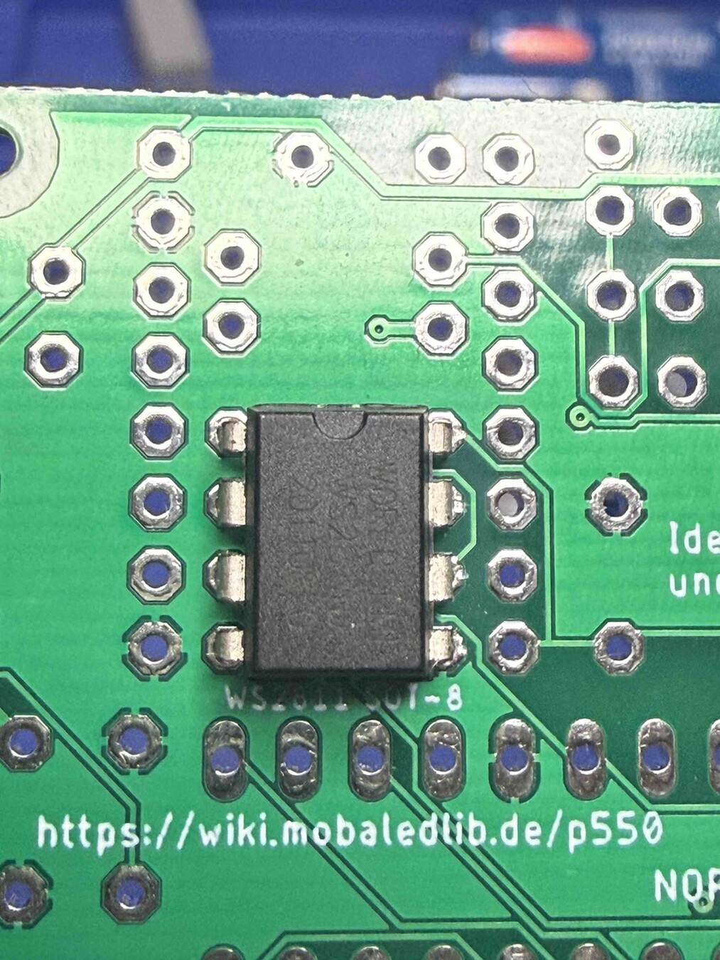 Bei dir ist also alles richtig, du lötest da wo auf der Oberseite der Platine der WS2811 eingezeichnet ist einen 8poligrnvSockel ein, in diesen kommt dann später das IC.