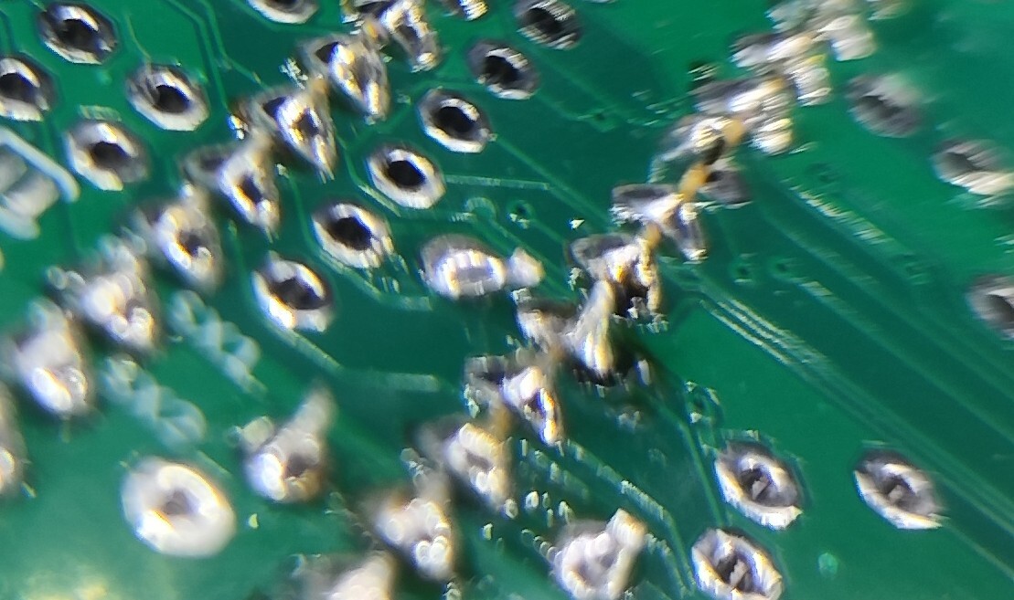 Könntest Du mal ein Foto von der Platinenrückseite hier einstellen (möglichst scharf). Vielleicht sieht man da was.