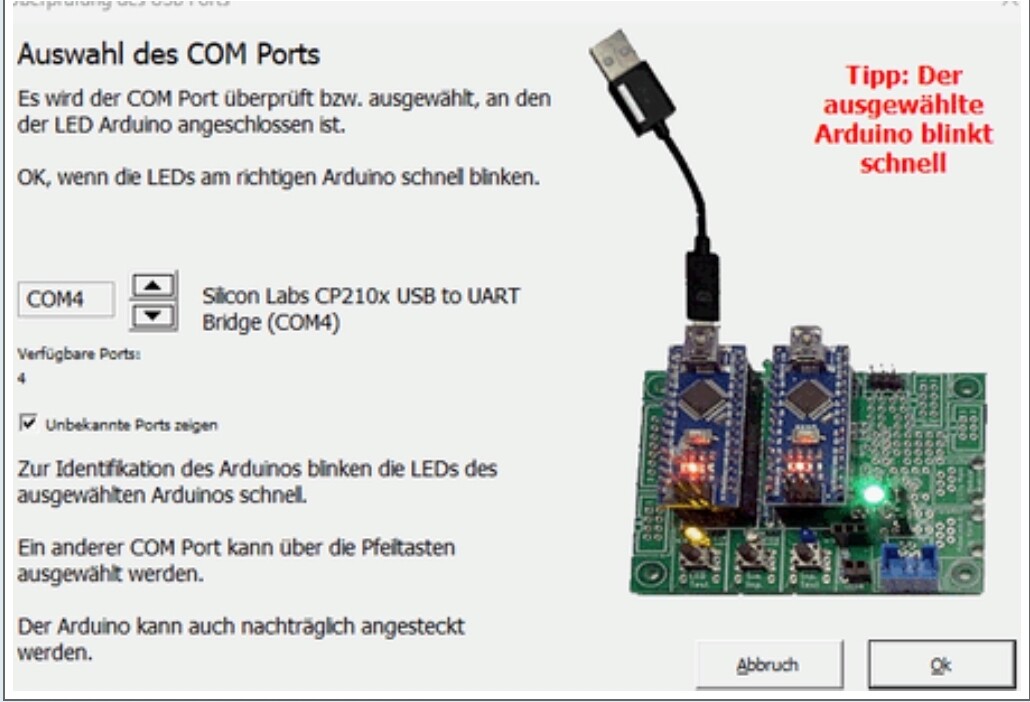 ich bekomme keine anderen Ports angezeigt. Das USB-Kabel war eine Idee, hat jedoch nicht geholfen. Nehme jetzt wieder das mitgelieferte Originalkabel.