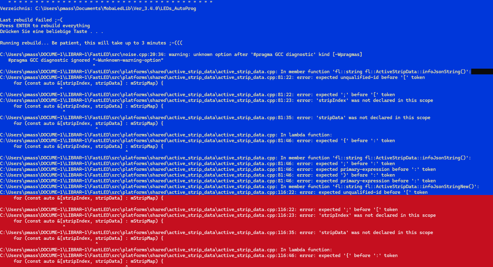 Gehe hierzu bitte auf "Optionen" Karteikarte "Update" und klicke da den Button "Installiere Beta Test". Dann bekommst Du die aktuelle Version der MobaLedLib und auch die richtige FastLed-Bibliothek.
