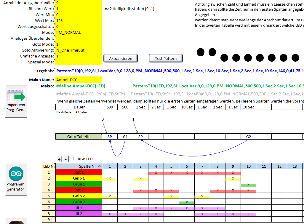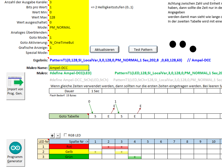 Die Programmierung der Ampel über den Pattern habe ich schon gemacht.