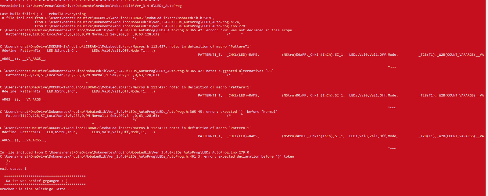 wenn ich den Pattern so programmiere, bekomme ich folgende Fehlermeldung