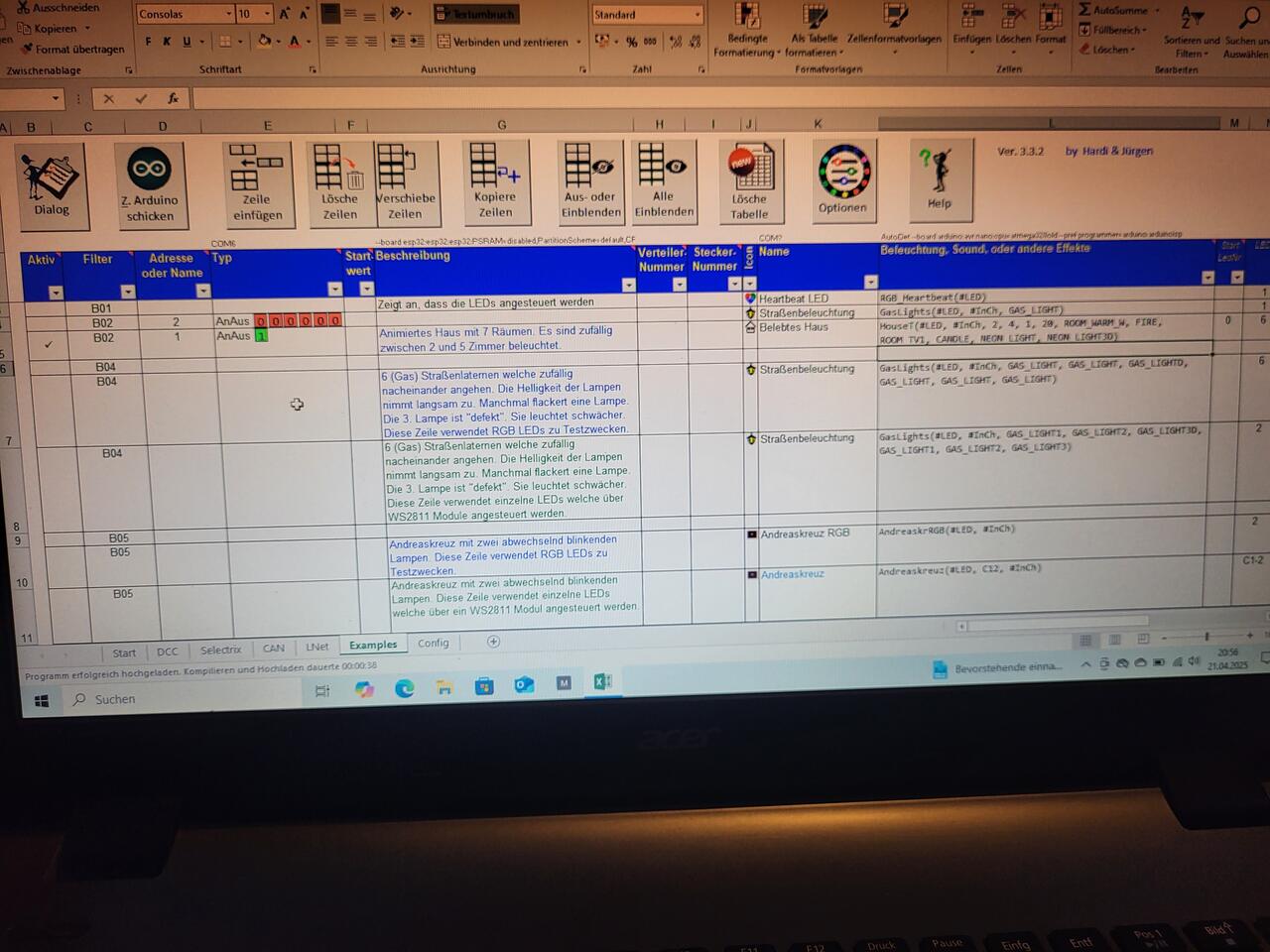 Beende ich den Prog.generator läuft die Lichtsteuerung weiter.Ziehe ich den USBstecker vom Laptop ab und wieder dran leuchten nur noch die beiden LEDs der Hauptplatine(grün dauernd,weiss blinkend)Mit Start des Programmers läufts wieder.