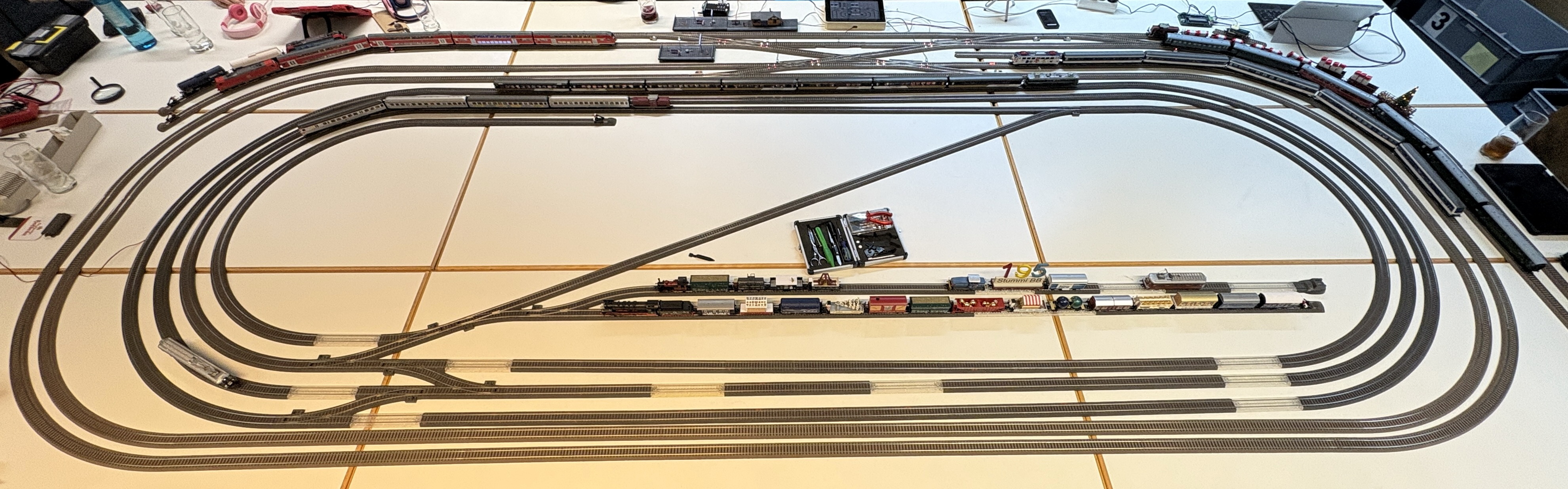 Gestern war unser monatlicher Stummi-BB-Treff und ich hatte den Gleisplan vorbereitet damit die Testbahnsteige genügend Platz bekamen.