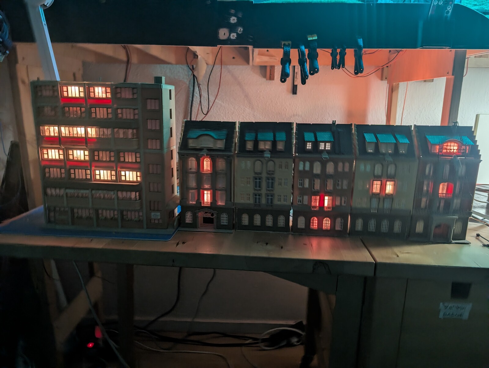 Stell doch bitte mal eine (händische) Skizze ein, wie das verbunden ist (mit allen Komponenten und der Anzahl der LED's pro Haus).