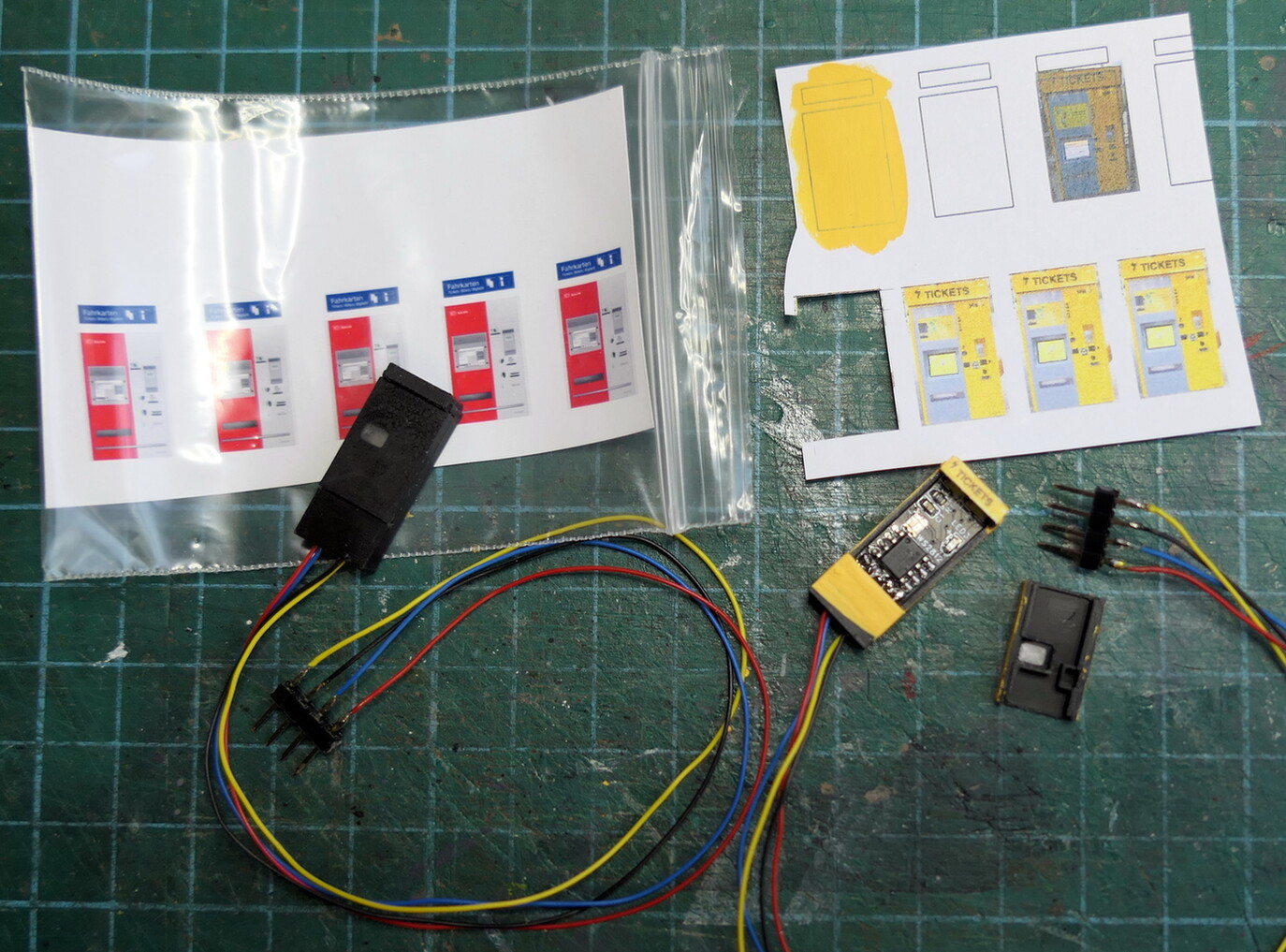 Ich habe im Moba Shop einen Fahrkarten Automat gesehen. So wie ich es sehe muss dieser nur noch angeschlossen werden und zusammen gebaut werden. Oder sehe ich da was falsch.