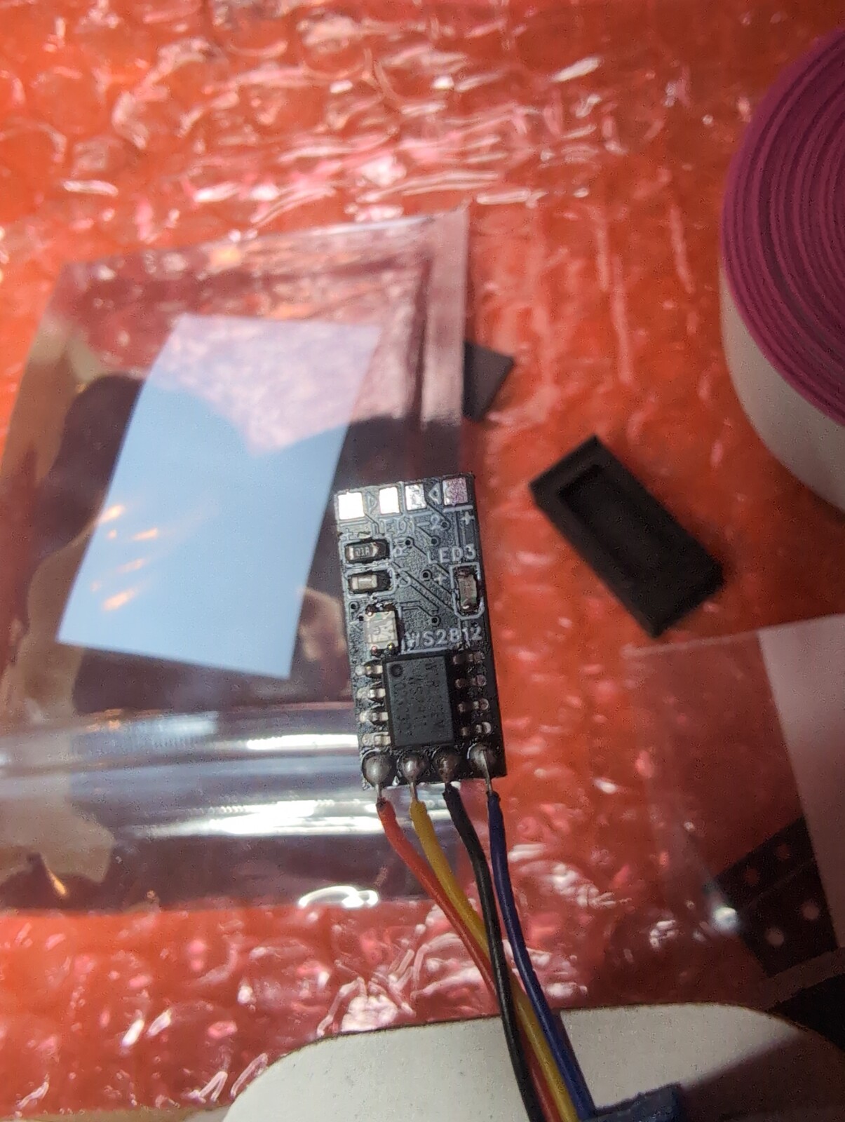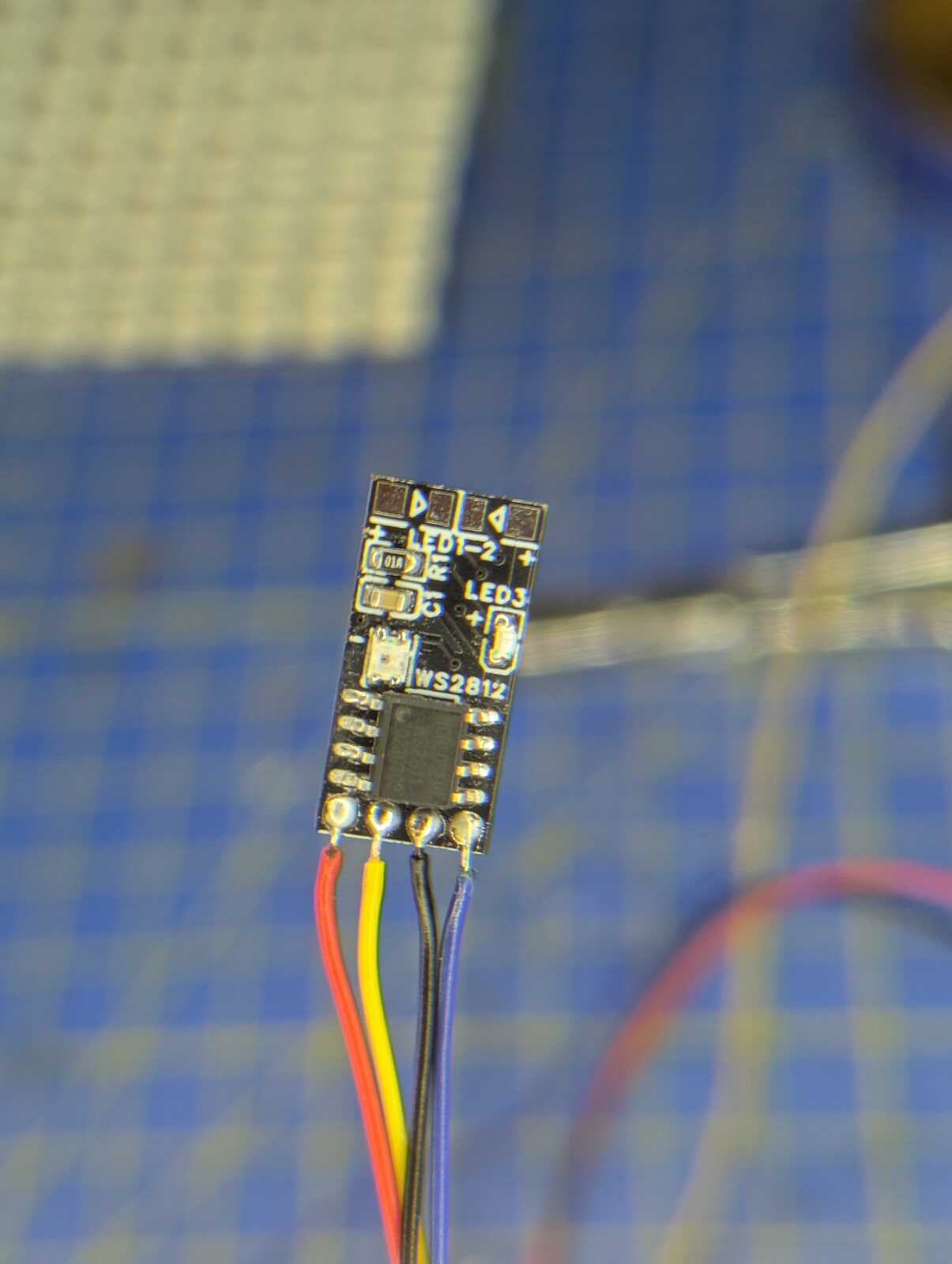Du musst noch 4 Kabel an die Platine löten (ich nehme Decoderlitze dafür), in das 3D-Druckteil einfädeln, Frontdeckel drauf, anmalen und dann den Papierausdruck vorne befestigen.