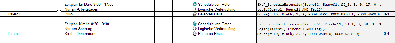 Ich hab da mal noch zwei Beispiele dran gehängt. Zum einen ein Büro (Montag - Freitag) und eine Kirche (nur Sonntag).