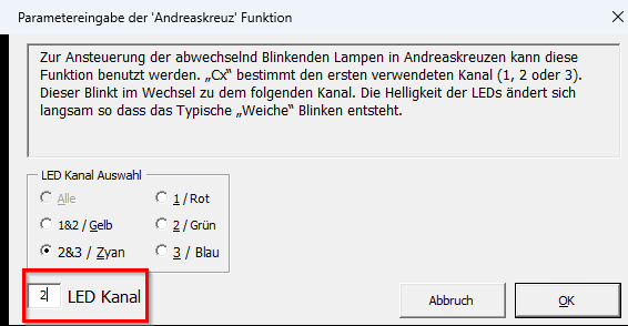 Da gibt es dann meistens ein Feld "Led-Kanal". Da steht normalerweise 0 drin. Da muss dann eine 2 rein.