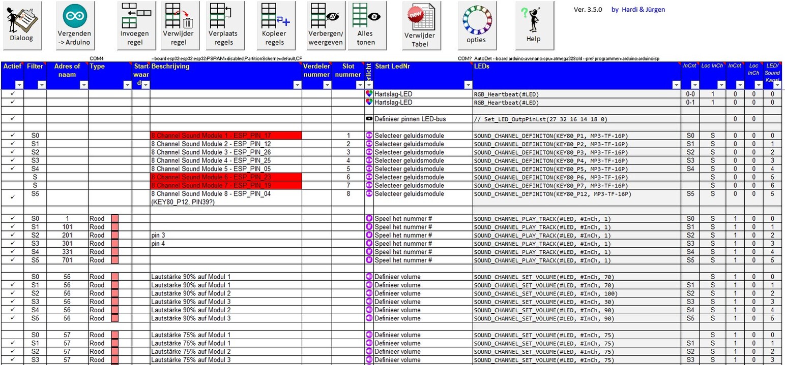ich habe acht MP3-TF-16P-Module. Aktuell besitze ich nur 6 SD-Karten. Daher habe ich bisher nur sechs Soundkarten auf der 8-Kanal-Soundkarte verwendet. Ich weiß, dass ich nur sieben nutzen kann. Das reicht mir völlig. Ich möchte die Module aber auch steuern können und weiß im Moment nicht, wo ich die entsprechenden Einstellungen finde und wie ich sie im Programmkonfigurator programmieren kann.