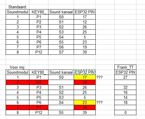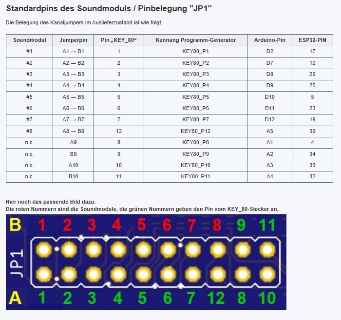 die PINS im Set Befehl sind nur die LED Pins. Die Verwendeten PINS für den Sound stehen in der Tabelle. Diese hängen fest an den Key80 Pins.
