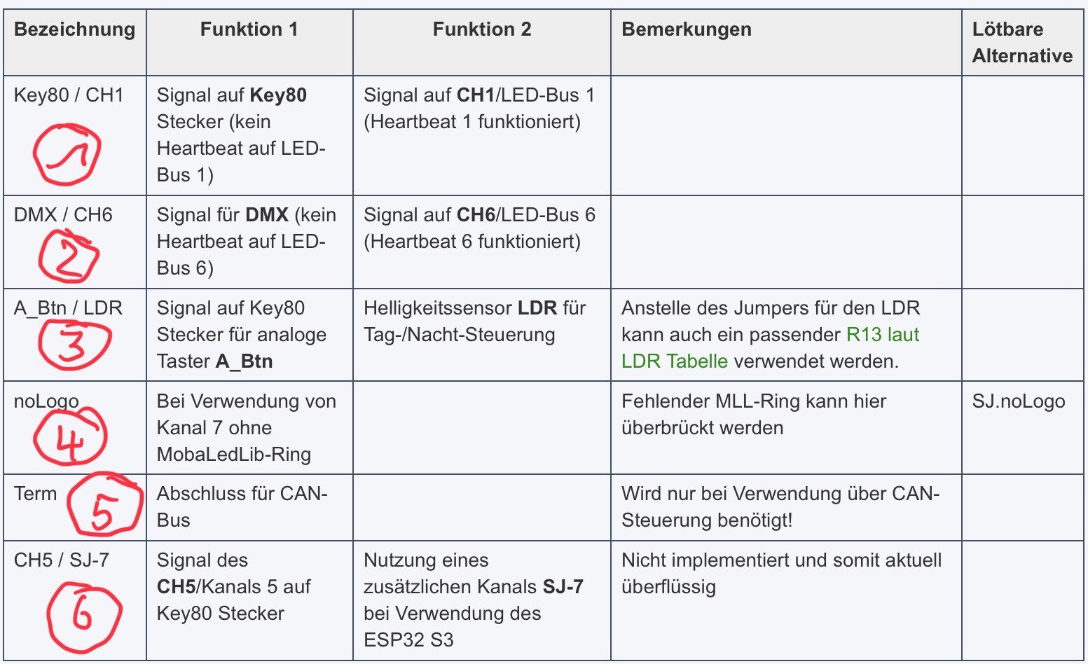 3. Entweder Du willst den Helligkeitssensor aktivieren (egal ob Du ihn wirklich benutzt), oder analoge Taster. Da Du bei Kanal 1 schon Pushbuttons eingestellt hast, ist deren Stecker belegt. Es bleibt also nur Funktion 2 für den Jumper.