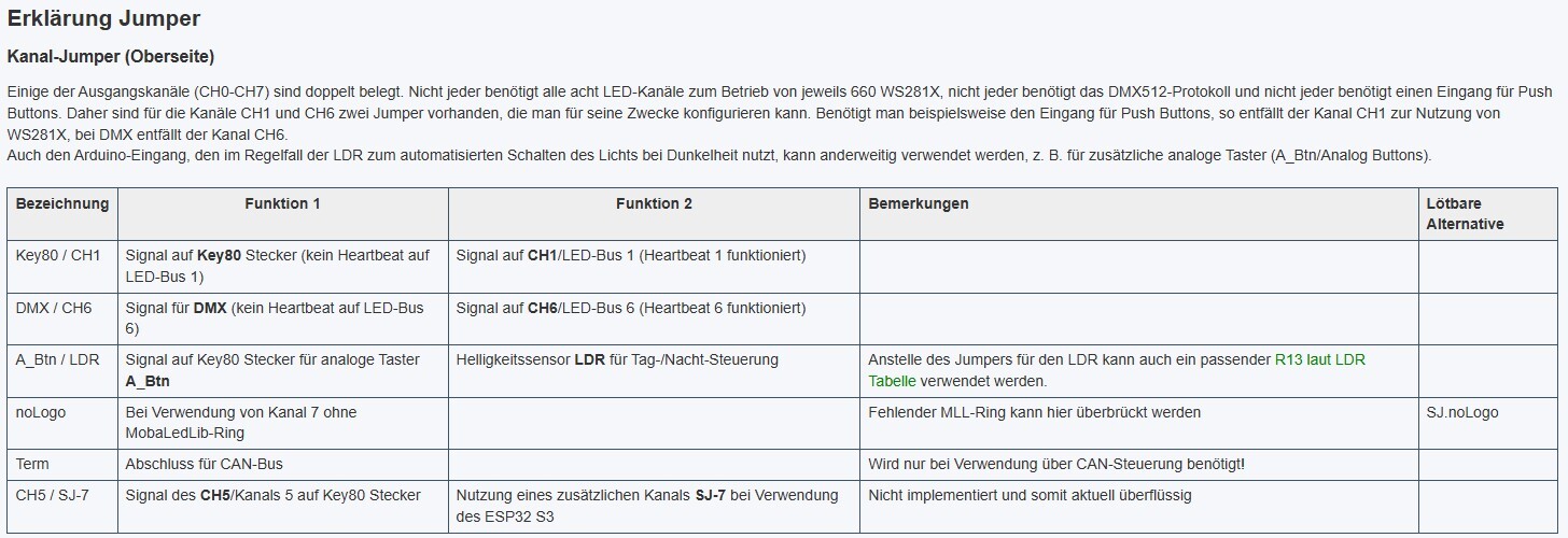 4. Kanal 7 betreibt den MLL-Ring. Wenn Du ihn nicht einbaust, Jumper in Position 1, sonst kein Jumper.