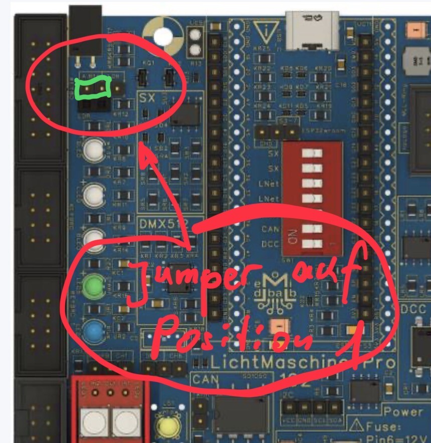 2. Kanal 6 wird ersetzt für DMX-Benutzer, hast Du nicht, also Jumper auf Position 2.