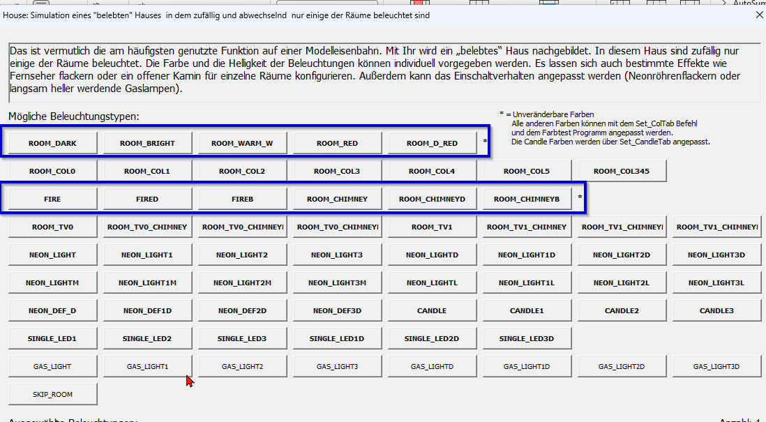 Wenn ich das SetColTab Makro in meinem Programm am Anfang einbaue mit z.B einer oder zwei angepasster COL_x LED. Betrifft dies dann nur alle veränderten veränderbaren Farben in den im Programm verwendeten belebten Häusern. Wenn ich eine einstellbare RGB im Programm verwende dann fühlt sich diese natürlich nicht davon angesprochen. Das Macro gilt nur für die im Programm eingebauten belebten Häuser wo die veränderten Farben Verwendung finden solange nicht auf die Standard Werte zurückgesetzt wurde.