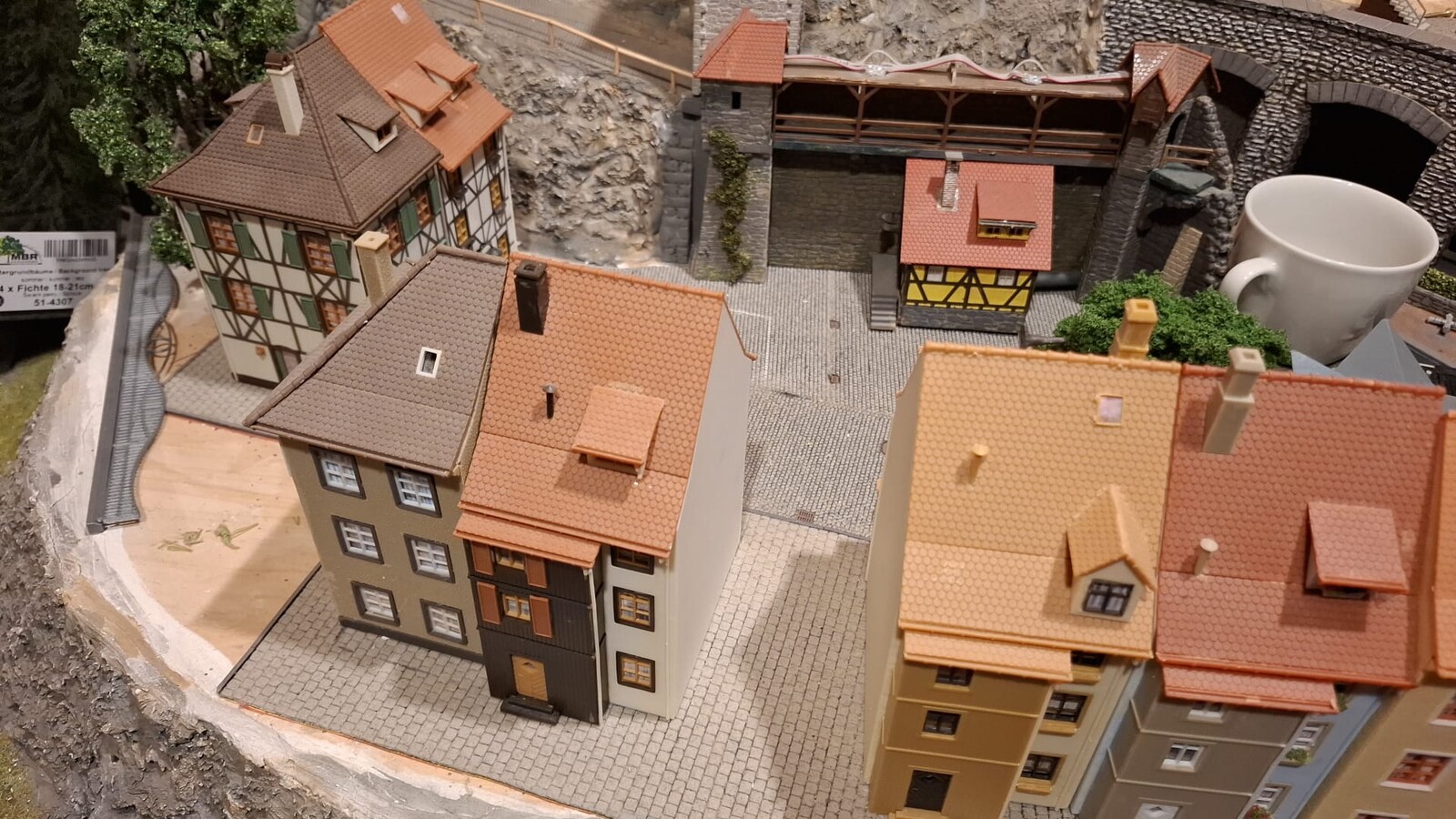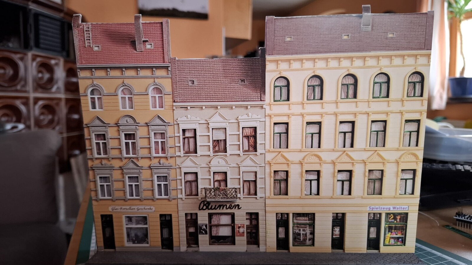 auch, wenn es nicht so schön ist wie die Beleuchtung der Räume von oben, habe ich für die kleine Faller Reihenhäuser Lichboxen gemacht, die von hinten beleuchtet werden. Da die Lichtboxen ca. 15 bis 30mm tief sind, verteilt sich das Licht relativ gleichmäßig.
