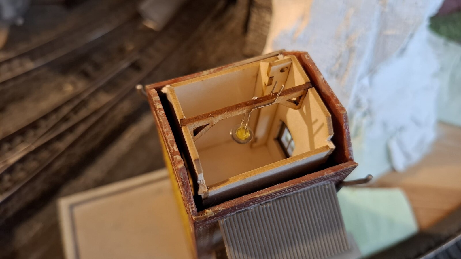 hier ein paar Bilder meines Bahnhofs: Auch das kleine Stellwerk erhält so seine Inneneinrichtung: viele Grüße