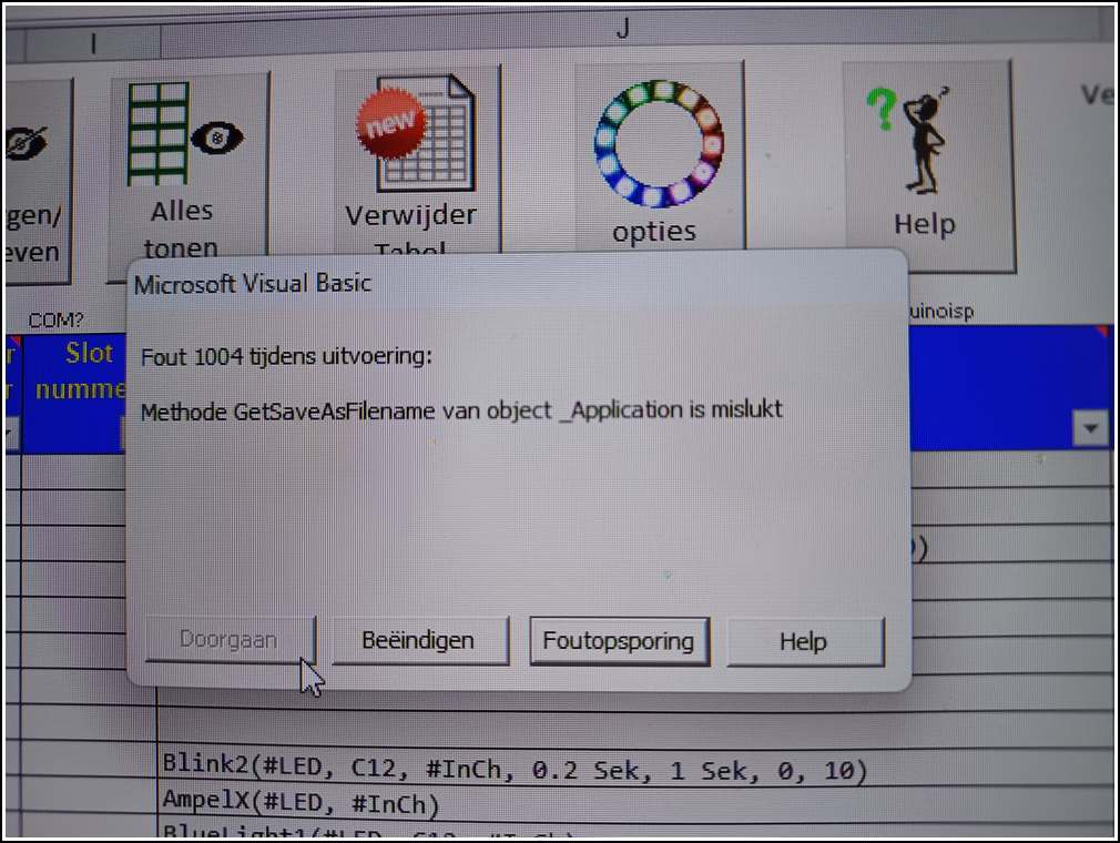 Wenn ich via opties ein sketch-datie speichern wil gibt es ein fehler meldung 1004