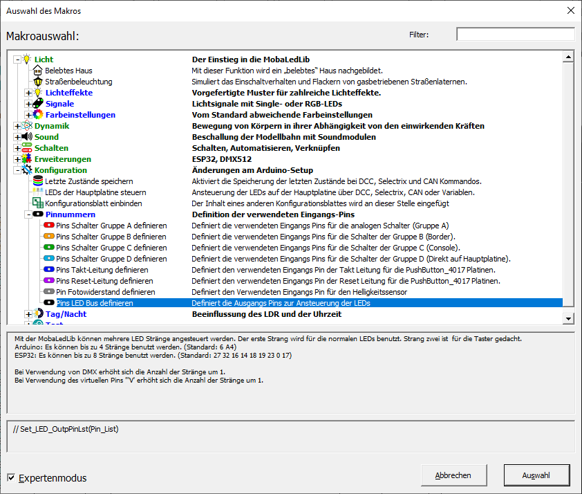 bei aktivierten Experteneinstellungen die LED-Bus Pins definieren. Das geht hier:
