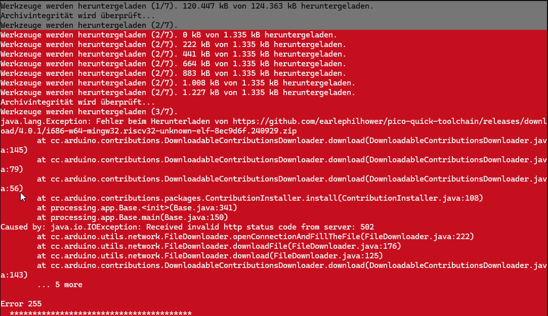 GitHub oder der spezifische Server, auf dem die Dateien von earlephilhower liegen, hat gerade ein Problem.