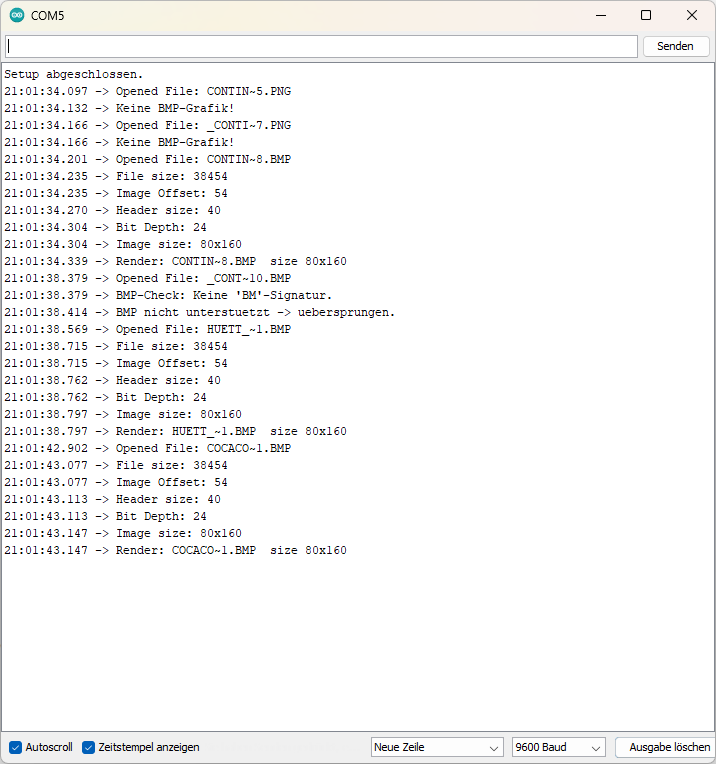 Im Folgenden lädt der Sketch folgerichtig das BMP-File "CONTIN~8.BMP" nachdem er es auf alle technischen Parameter überprüft hat und überspringt dann dessen zugehörige versteckte Datei "_CONT~10.BMP".