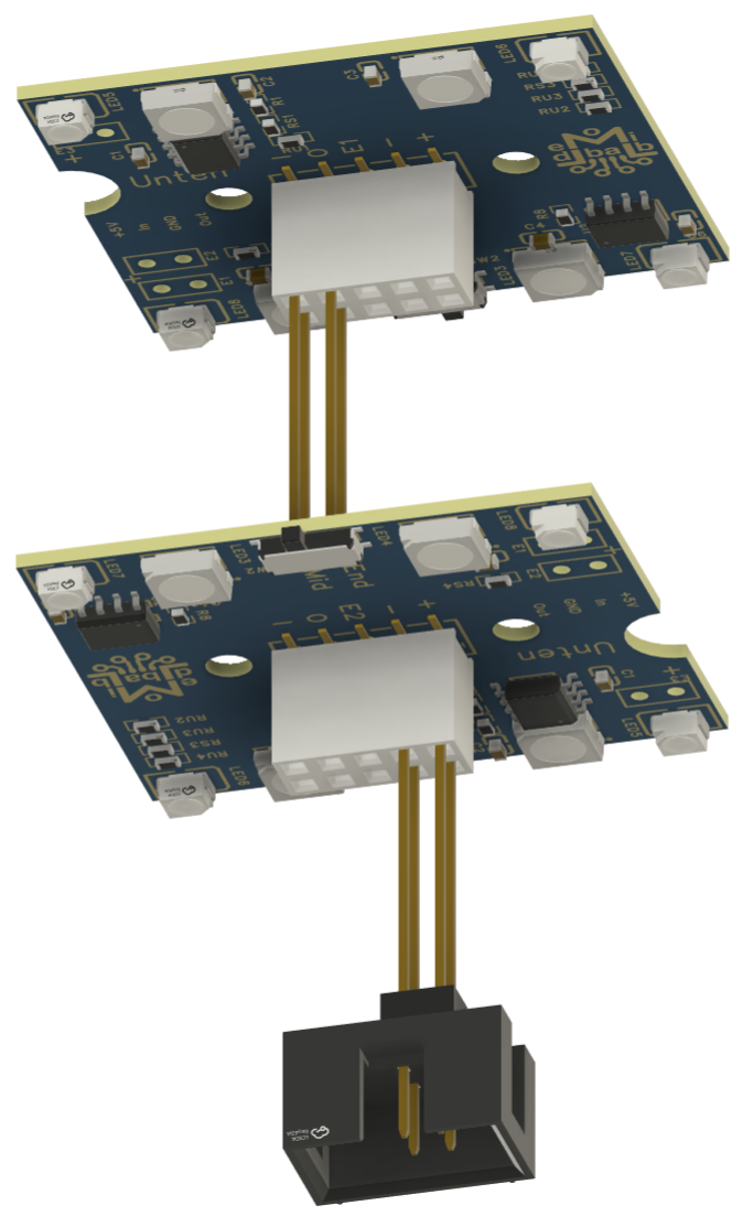 Platinen werden jeweils um 180° gedreht montiert (Sichergestellt über Kerbe). Dadurch kann man nichts falsch machen.