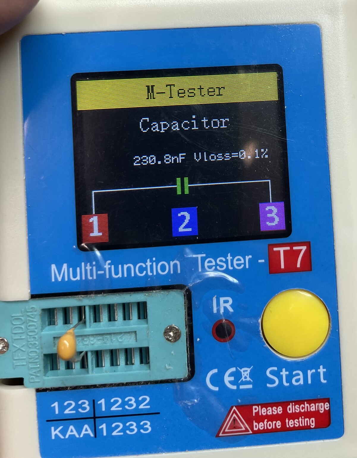 Komischerweise habe ich auch nur einen mit dem Wert 230,8 nF. Aber das kann ja eine Toleranz sein.