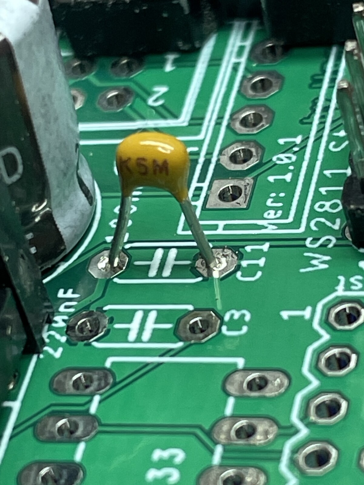 Jetzt beim löten fällt mir, im Abschnitt Keramikkondensatoren, auf dass in der Anleitung C1 & C3 mit 220nF offensichtlich zwei Kondensatoren vorgesehen sind. Im Bauteilsatz ist aber nur einer vorhanden.
