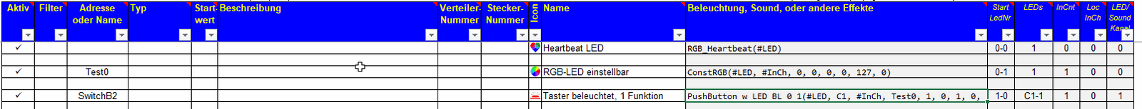 Ergebnis: Die LED bleibt aus. Und es ist egal ob da Test0 (LED leuchtet im "Aus"-Zustand) oder Test1 (LED leuchtet im betätigten Zustand) angegeben wird.