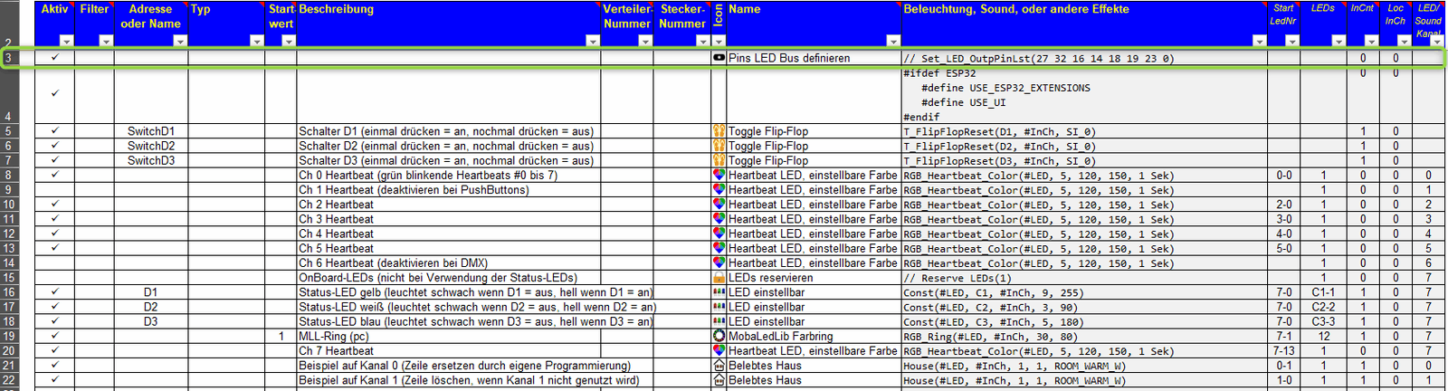 Ich hab mir eben nochmal die Datei aus dem Wiki geladen und bei mir ist in Zeile 3 die Pin-Zuordnung. Das sieht dann so aus: