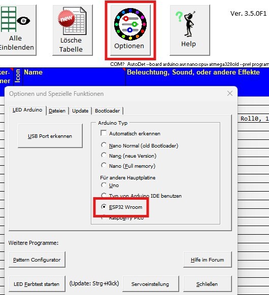 Muss ich dort noch andere Einstellungen vornehmen, da es ja eigentlich ein ESP-32 ist? Daher komme ich auch mit dem Anfänger-Video nicht so recht weiter. Wie kann ich, ohne weitere Komponenten angeschlossen zu haben, testen, ob eine Verbindung zwischen meinen Programmen und der Lichtmaschine besteht?