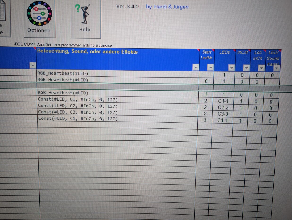 Lad dir mal die folgende Datei in den Programmgenerator (2 Heartbeats sind bereits aktiv, einer für die Hauptplatine, einer für den Verteiler) und probier einfach mal aus. Erstmal einen einschalten, gucken, dann ausschalten und dann den nächsten einschalten, usw.