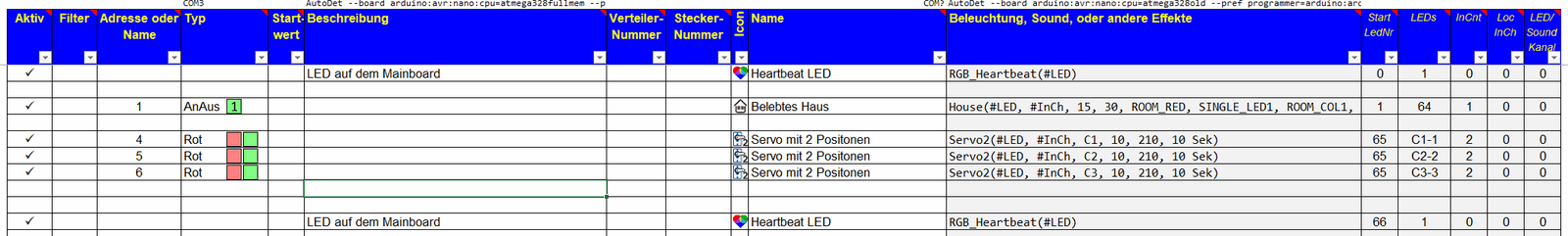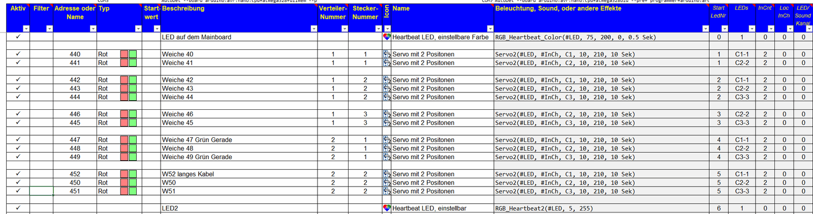 Wie sieht das dazugehörige Sheet aus, mit der Matrix und den servos?