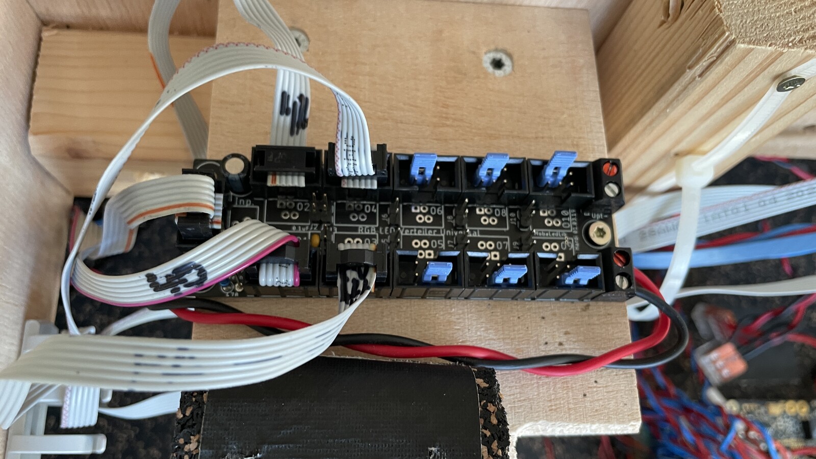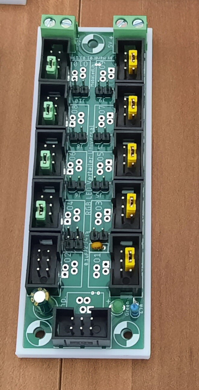 Die Verteilerplatinen sind mit 5V ab der Sicherungsplatine Pro einzeln angeschlossen