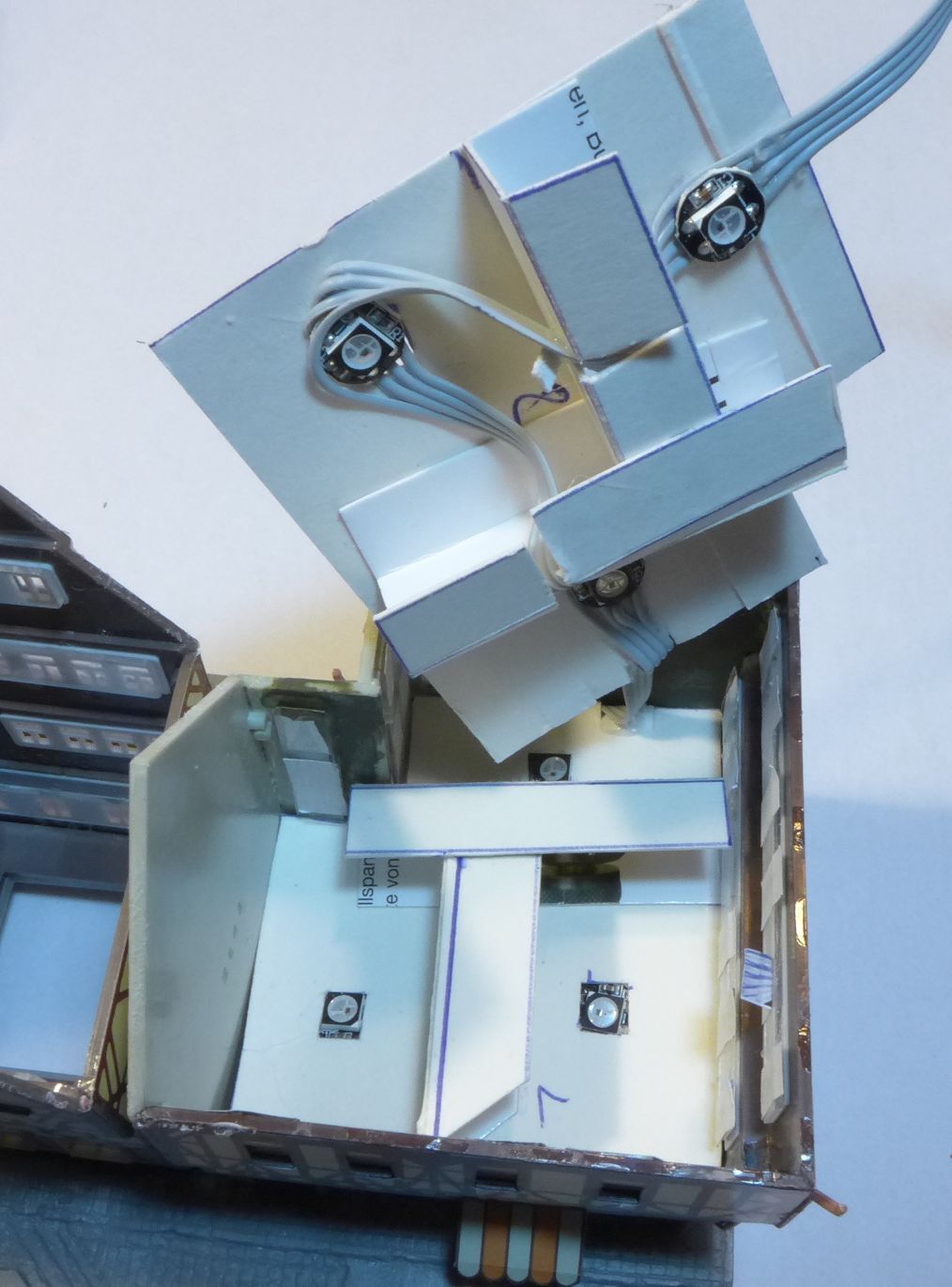 Hier nochmal ein Beispiel für ein Haus mit abnehmbarem Dach und einzeln entnehmbaren LEDs.